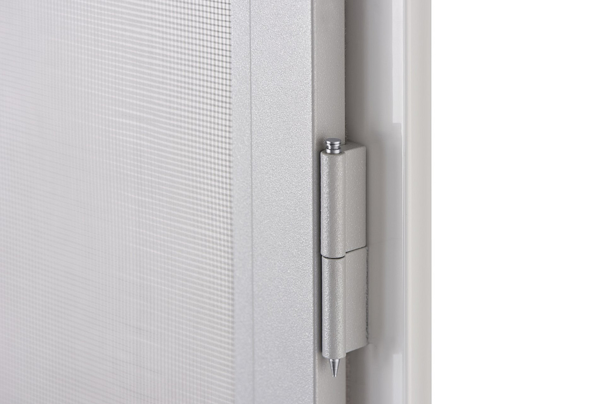Bereits im Standard statten wir alle Insektenschutz-Drehtüren mit einem Trittschutzblech an der Elementunterseite aus. Die Aussteifung verleiht dem Insektenschutzelement zusätzliche Stabilität und ist zudem praktisch, da in diesem Bereich der Rahmen mit sanfter Fußbedienung geöffnet werden kann.
