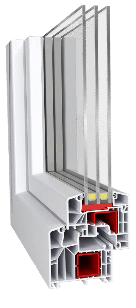 - Stahlverstärkungen im Profilinneren sorgen für Stabilität selbst bei großdimensionierten Fenstern