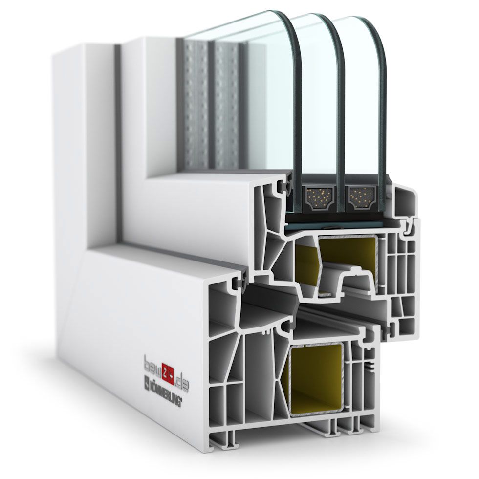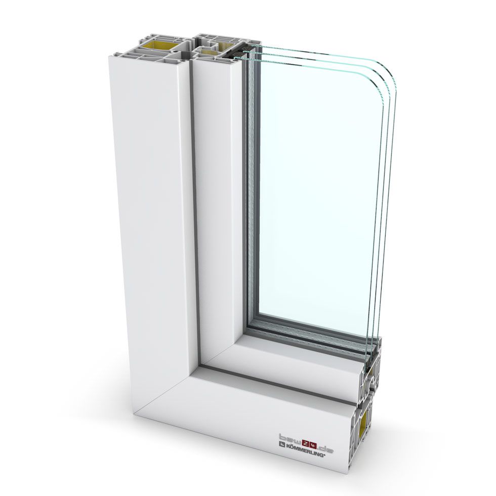 Ob Neubau oder Renovierung - mit dem Kunststofffenster Kömmerling 88 MD erhalten Sie ein Fenster mit hervorragenden Qualitätsmerkmalen zu einem sehr guten Preis-Leistungsverhältnis. Das 7-Kammersystem mit einer Bautiefe von 88 mm und Mitteldichtungssystem bietet gute Wärme- und Schalldämmwerte und optimale Stabilität. Das Plus an Sicherheit gewährleisten die technisch modernen Beschlagsysteme von Winkhaus sowie der serienmäßige Victory-Fenstergriff.