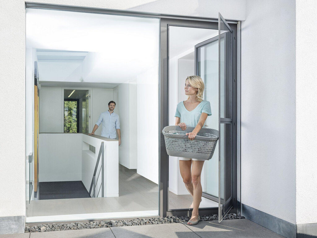 Freude am Insektenschutz – ein Produktleben lang. Alle Beschlagteile sind hinsichtlich Dauerfestigkeit und Langlebigkeit optimiert. Gerade im Bereich der Scharniere meistern wir eine hervorragende Kraft- und Momentaufnahme bei geringsten Beschlagabmessungen. Wir setzen auf beste Materialien, wie Aluminium, Edelstahl und High-Tech Kunststoffe. Dauertests stellen die Langlebigkeit unter Beweis: 120.000 Schließvorgängen am Stück stellen für unsere Pendeltüren kein Problem dar.