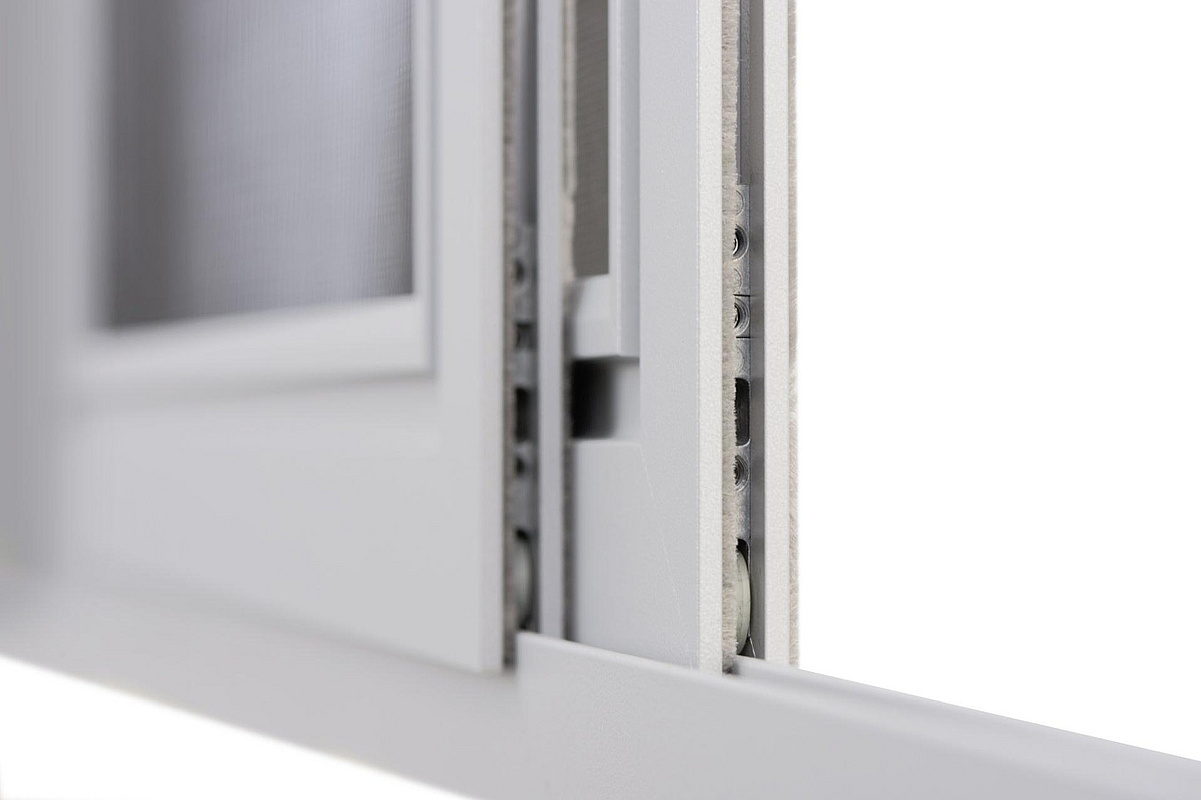 Unsere Schiebetüren mit angenehm gestalteten Profilkonturen und hochtransparentem Gewebe sind ein echter Hingucker – sofern Ihre Gäste den Insektenschutz überhaupt bemerken. Laufruhe, Leichtgängigkeit und eine intuitive Bedienung zeichnen unsere Schiebesysteme aus. Mit der integrierten Griffnut kann der Flügel in jeder Angriffshöhe geöffnet werden, dies ist auch ideal für Kinder. Mit dem im Standard verbauten Schließbeschlag arretiert Ihr Flügel sanft in Endposition. Unsere Gewebe zeichnen sich durch hohe Durchsicht bei geprüfter Langlebigkeit aus – überzeugen Sie sich.